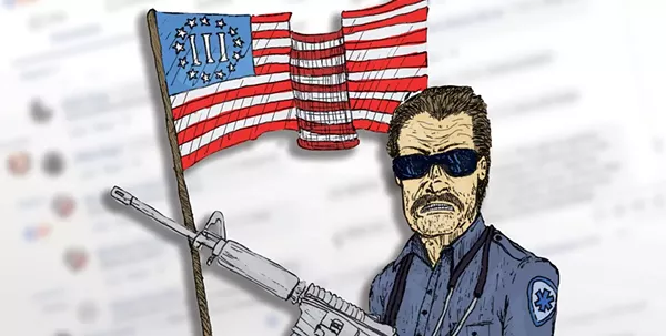 Ryan Netherton added Steve Netherton, a firefighter employed by South Oldham Fire Department outside of Louisville, Ky., to the Roll Call group in April. In late June, Jason Minnar, a firefighter trainee at the department, also joined the group. Minnar's personal Facebook page displays Three Percenter symbols — such as a modified Betsy Ross-style flag — signifying affinity with a subset of the militia movement that conceives modern-day Second Amendment proponents as the political heirs of the American patriots who threw off British colonial rule.