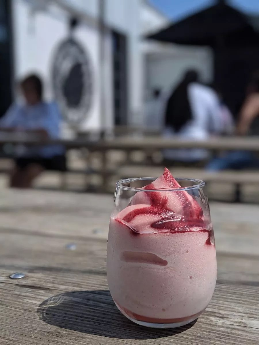 In addition to offering frosé, a frozen margarita (tequila, cointreau, lime) and a frozen mule (vodka, lime, ginger beer), The Charlevoix also has a Jim Beam orange-based frozen drink made with vanilla vodka, amaretto, and citrus called Fred the Push. Might as well push that drink right into our faces.