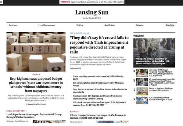 "The Lansing Sun" is one of nearly 40 websites designed to look like local news sites that have cropped up in recent weeks. The sites have a right-wing bent.